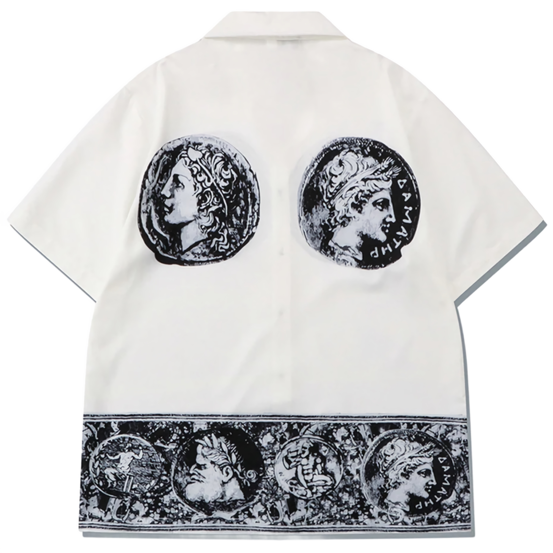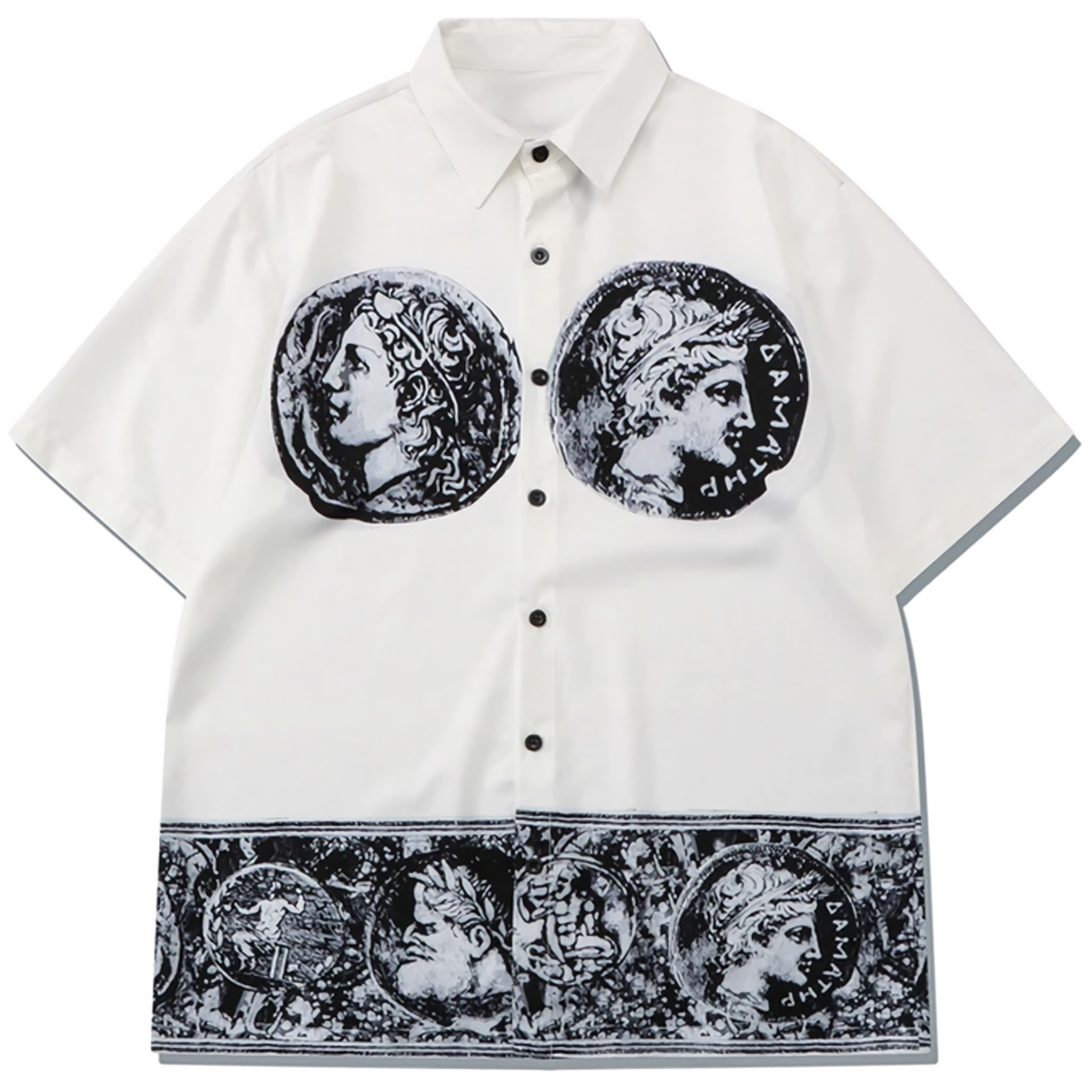 'Fortune' Tetradrachm Print Short Sleeve Button Up