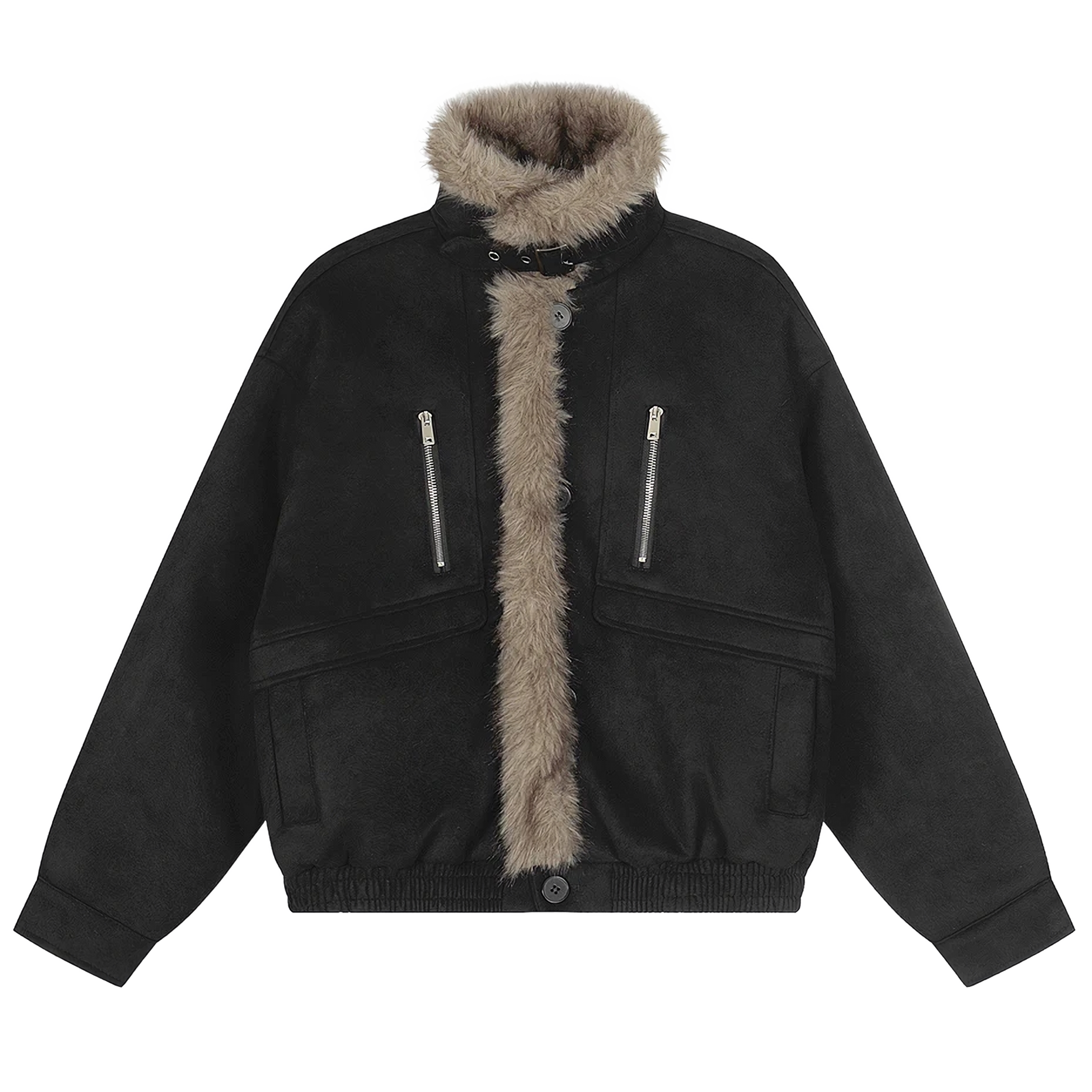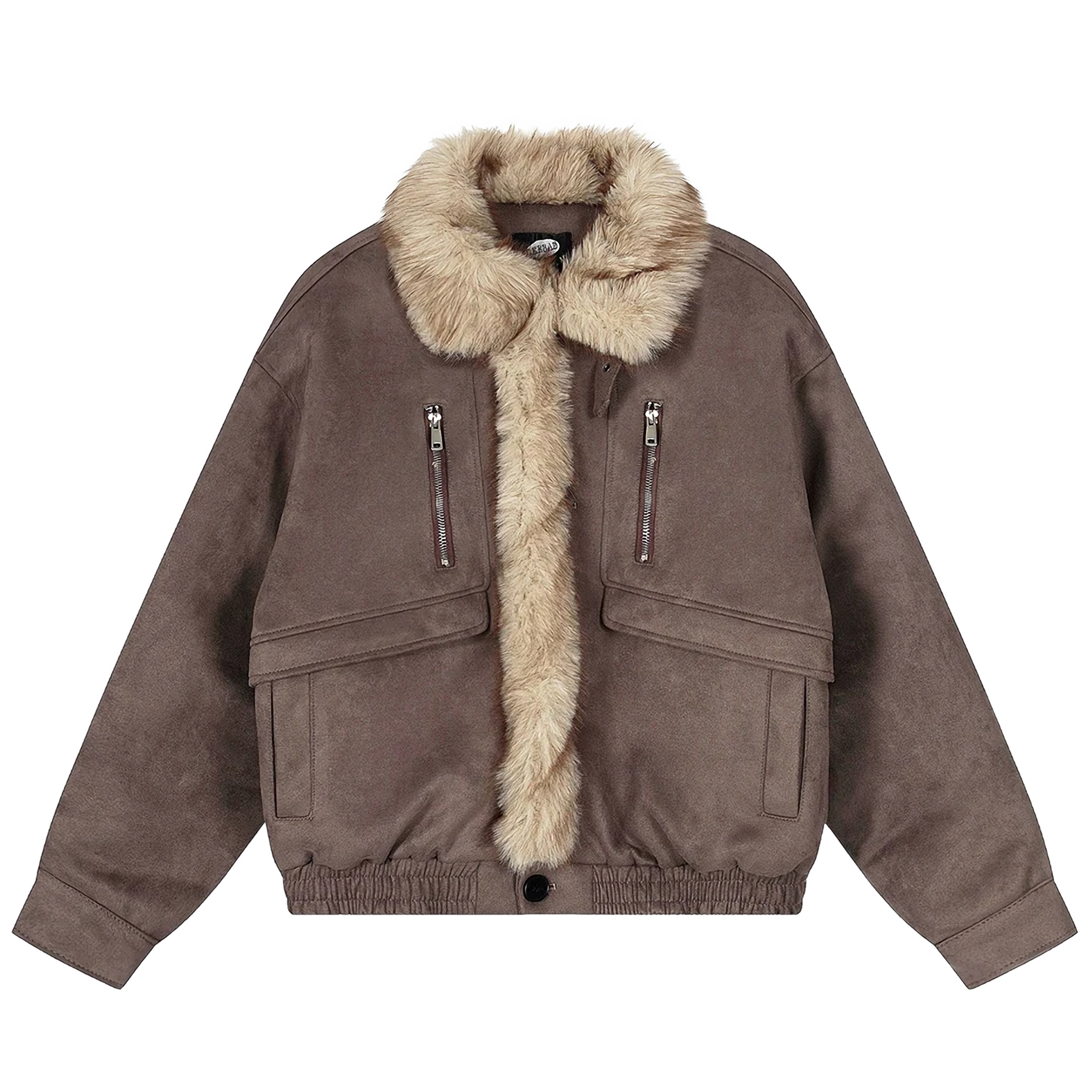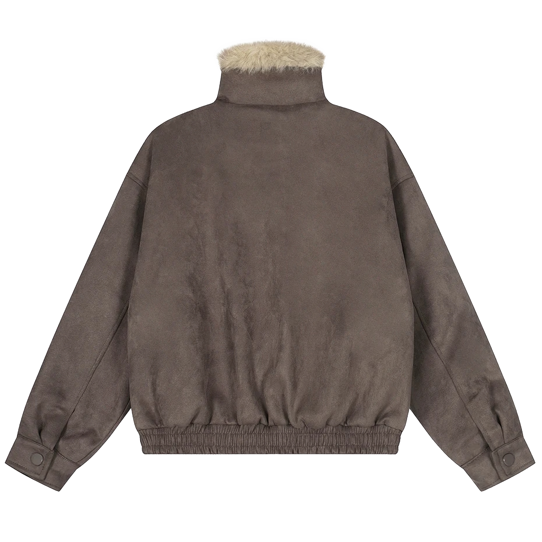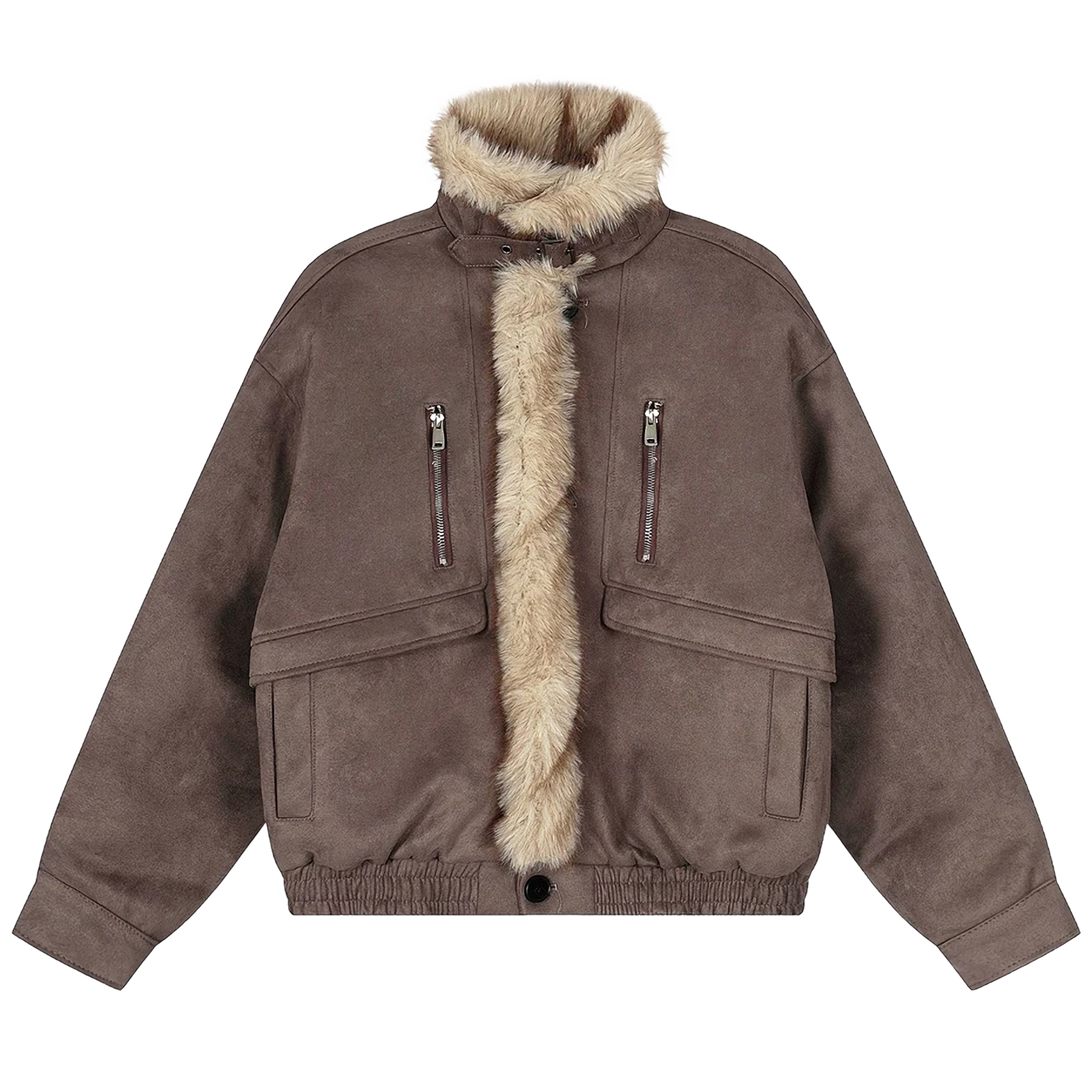'Kodiak' Relaxed Suede-Touch Fur Trim Jacket