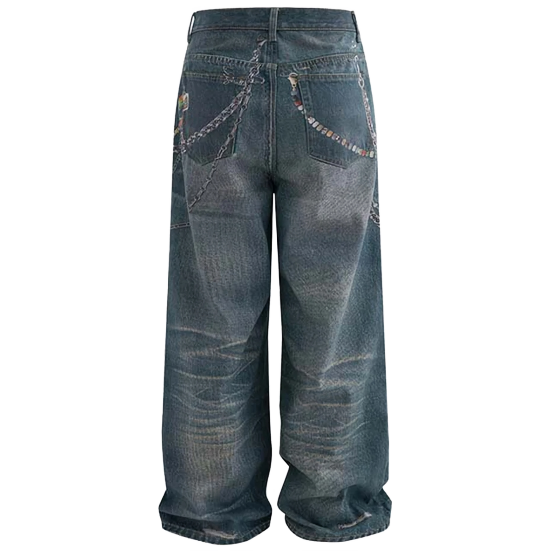Available in sizes S, M, L, XL, these jeans feature a spacious, laid-back fit.